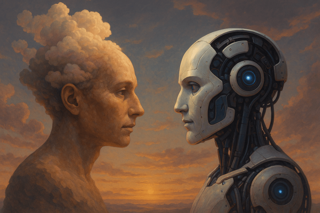 ontstaat iets dat groter is dan mens of machine — het moment van zuiver gewaarzijn zelf.